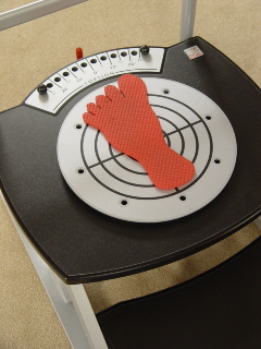 - Ab etwa Schuhgröße 44 ist es empfehlenswert, die optional erhältliche Vergrößerungsplatte zu verwenden, da anderenfalls ein zu großer Abstand von der Ferse zur Kreismitte bestünde.